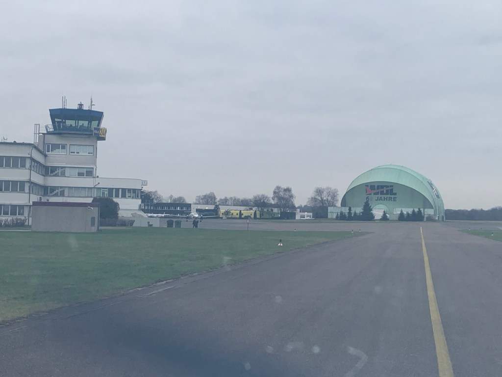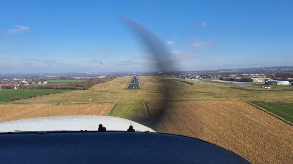 Wir meldeten uns beim Turm an, und der (ebenfalls sehr freundliche!) Fluglotse ließ uns einen Direktanflug auf die Piste 06 durchführen, denn die Bahnrichtung hatte sich mittlerweile geändert.