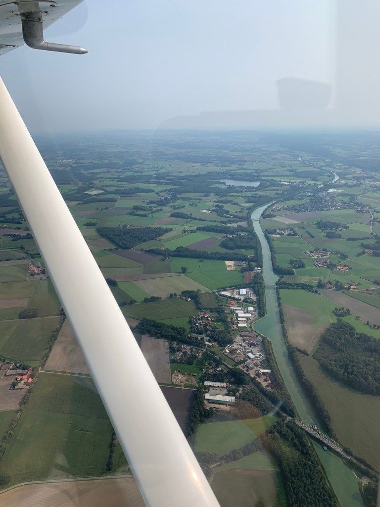 Der Flug ging sehr ruhig vonstatten, es gab keine Thermik und auch nur leichten Wind, was den Flug sehr angenehm machte. In Borkenberge war ein Low Approach geplant, also ein tiefer Anflug, mit einer Durchstartübung.