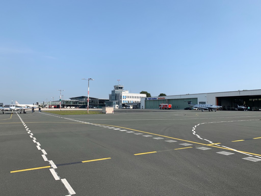 Nach meiner Landung machte ich mich wieder auf den Weg, um mir einen Stempel abzuholen (Die Landegebühren in Paderborn werden direkt mit der Flugschule abgerechnet). Hier dann Erstaunen meinerseits, denn der freundliche Mitarbeiter erklärte mir, dass sie dies derzeit nicht dürfen, wegen Corona…. ich frage mich immer noch worin die Gefahr besteht einen Stempel auf ein Stück Papier zu drücken… aber gut, Fluglehrer Christof hatte mich diesbezüglich vorgewarnt und mir gesagt, das sei nicht schlimm. Zum Beweis habe ich einfach ein Foto vom Flughafen gemacht, in den Metadaten sind ja Geokoordinaten und Zeit gespeichert…